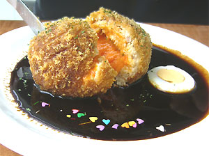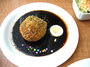 地球に見立ててつくられた球状のメンチカツなんです!